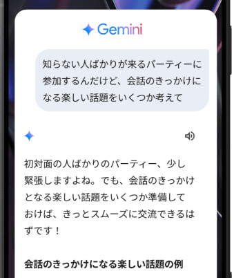 GoogleのAIアシスタントGeminiとチャットして、サポートをすばやく簡単に受けられる。