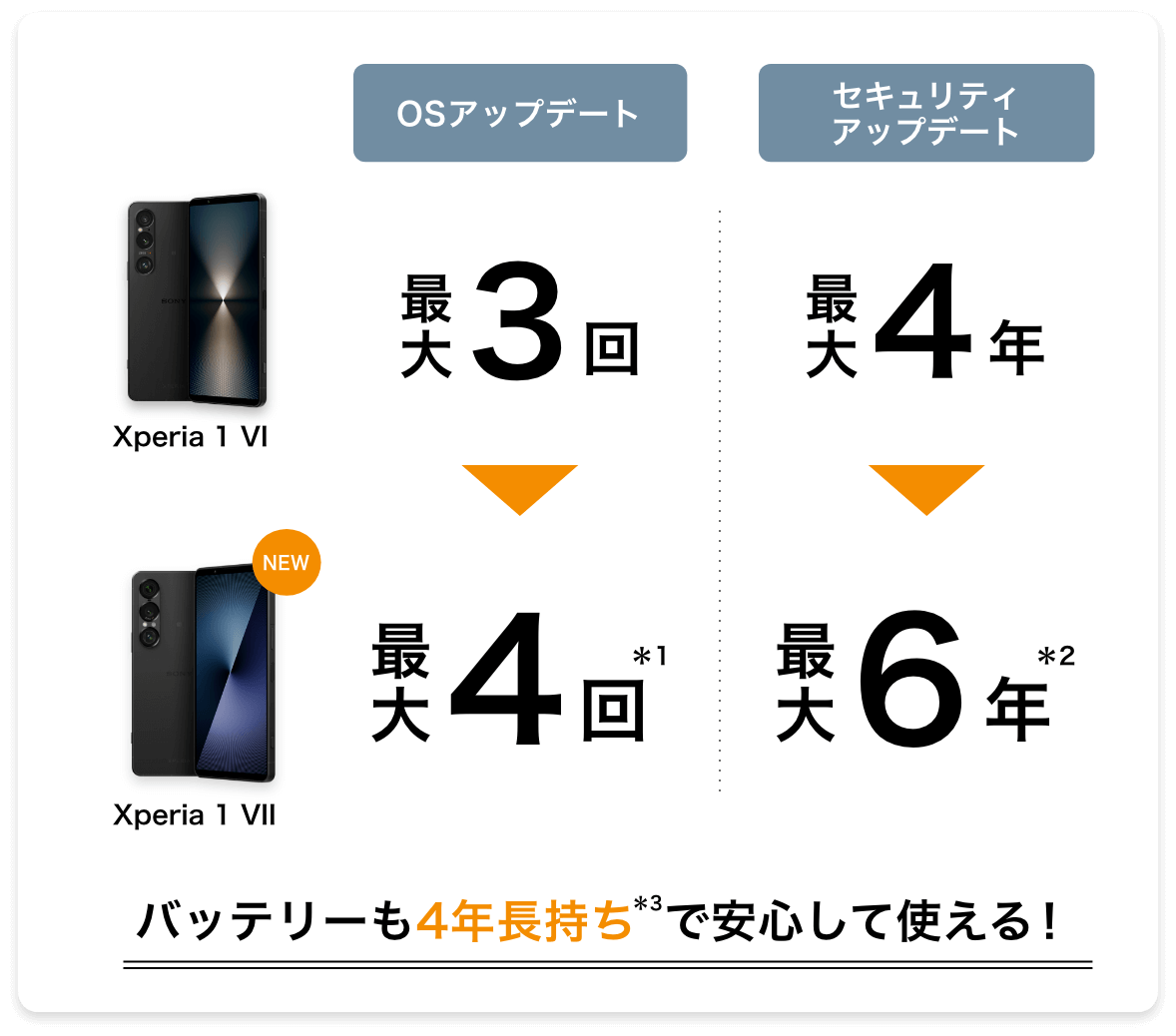 Xperia 1 ⅥよりもOSアップデートがさらにもう1回多く、