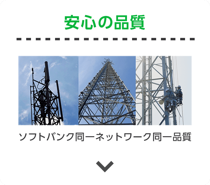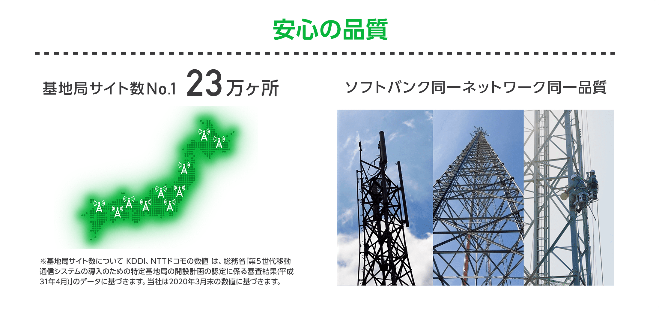 安心の品質 基地局サイト数No.1 23万ヶ所 ソフトバンク同一ネットワーク同一品質