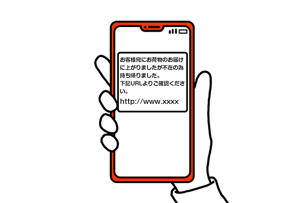 宅配業者を装った詐欺で、アクセスするとフィッシング詐欺に遭う可能性がある