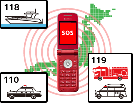 ソフトバンク携帯電話から緊急通報(110番、118番、119番)を行った場合に、緊急通報を行った場所に関する位置情報を緊急通報受理機関に自動的に通知します。