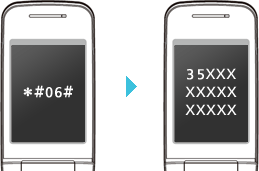 待受画面で「*#06#」と入力すると、画面に「35」から始まる15桁の製造番号(IMEI)が表示されます。