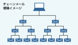 ねずみ算式に、不特定多数の人の間を増殖しながら転送されていくチェーンメール。インターネットに過大な負荷をかけたり、誤った情報が広がってしまったりする、迷惑メールのひとつです。「返信しない」「転送しない」「アクセスしない」で無視をしましょう。