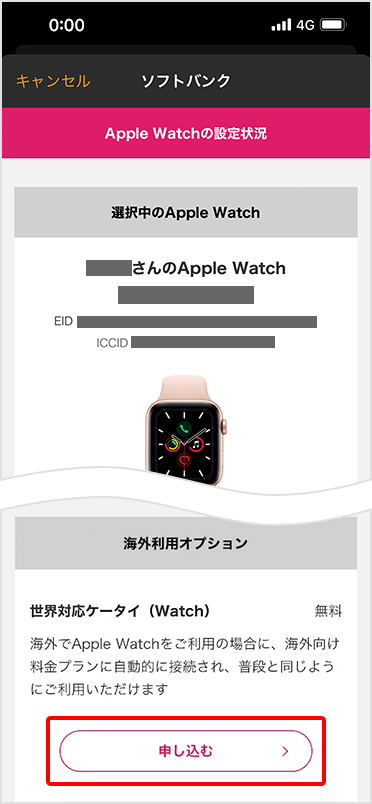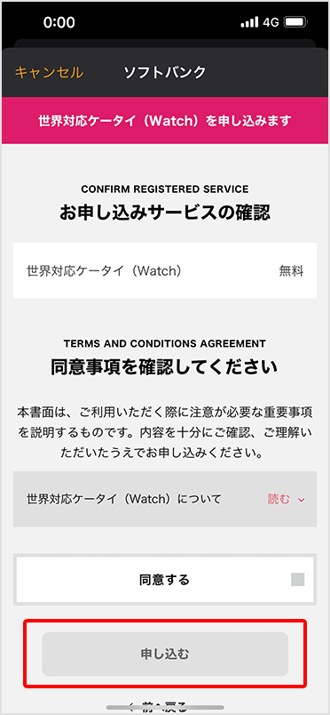 世界対応ケータイ(Watch)を「申し込む」をタップ