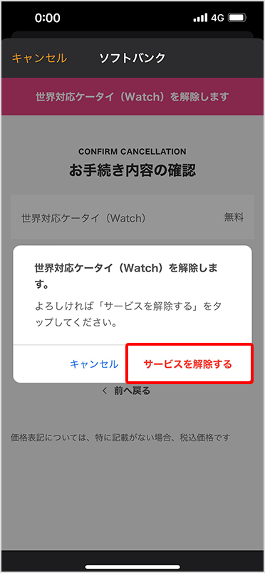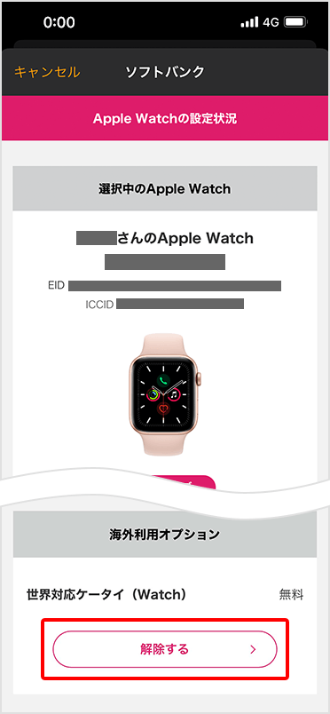 世界対応ケータイ(Watch)を「解除する」をタップ