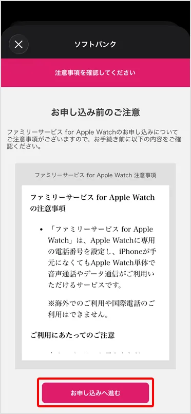 以下のお客さまは、Watchアプリ からのお申し込みはできません。お近くのソフトバンクショップ※2でお手続きください。