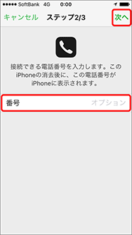 電話番号を入力し、「次へ」を押します。