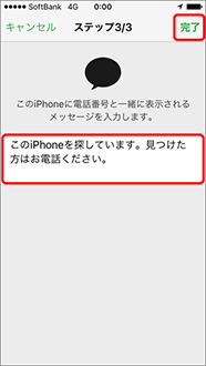 - 電話番号は紛失した iPhone、iPad に表示されます。拾った方がご連絡できる電話番号をご入力ください。