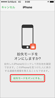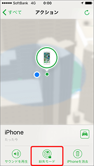 アクション画面下にある「紛失モード」を押します。