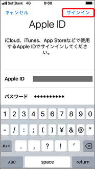 Apple ID、パスワードを入力します。