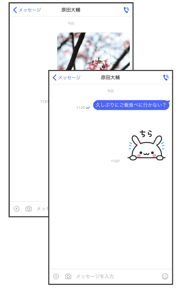 写真や動画はもちろん、スタンプや現在地の情報を送受信することもできます。