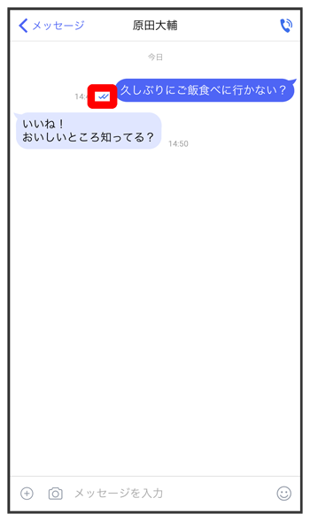 (既読)に変わり、メッセージの既読を相手に通知します。受信したメッセージを確認しても