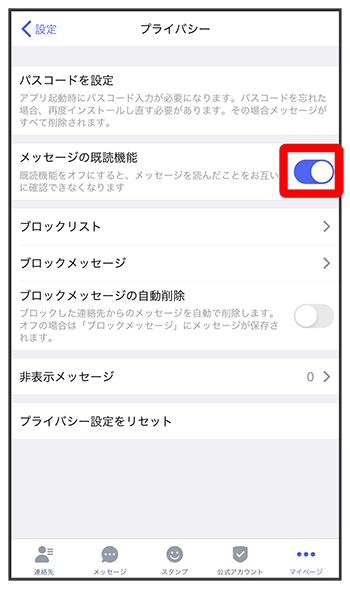 - 既読であることを相手に通知しない設定に変更すると、送信したメッセージを相手が既読にしたことも通知されなくなります。