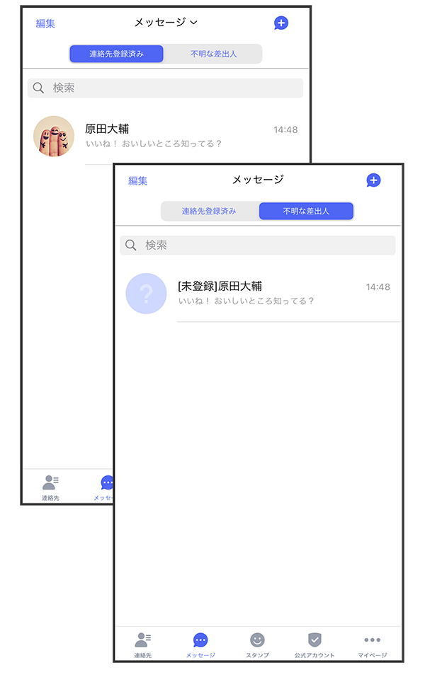 連絡先に登録していない差出人からのメッセージを、連絡先に登録している差出人からのメッセージと分けて表示するかどうかを設定します。