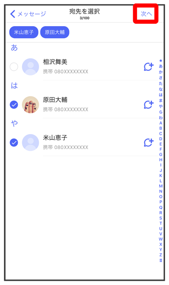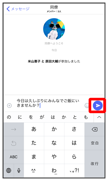 グループメッセージ内で、宛先を指定してメッセージを送信することができます。