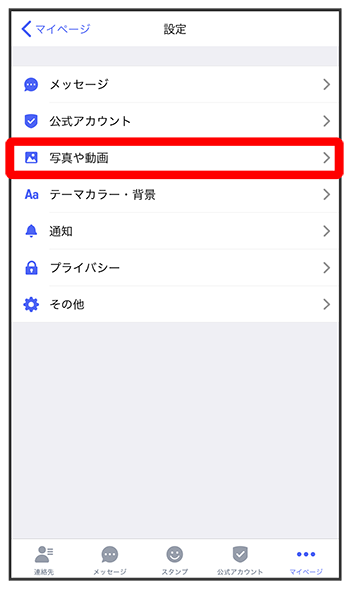 | 写真や動画の端末自動保存 | 受信した写真や動画などのファイルを、端末に自動で保存するかどうかを設定します。 |