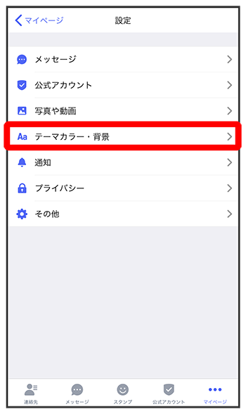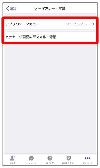 | メッセージ画面のデフォルト背景 | メッセージ画面の背景画像を設定できます。 |