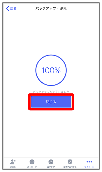 表示)にしてください。 - をタップしたときは、バックアップしたいメッセージを選択をタップしてください。