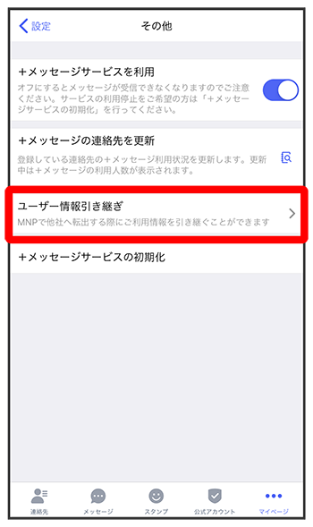 のりかえ(MNP/番号移行)先の事業者でも+メッセージを利用する場合、以下のユーザー情報を引き継ぐことができます。