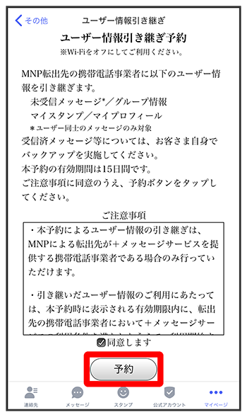 - 【赤】ユーザー情報引き継ぎの有効期限は、ユーザー情報引き継ぎ予約をしてから15日間です。有効期限内に、お乗り換え後の端末でアプリを起動し、サービスを利用開始する必要があります。