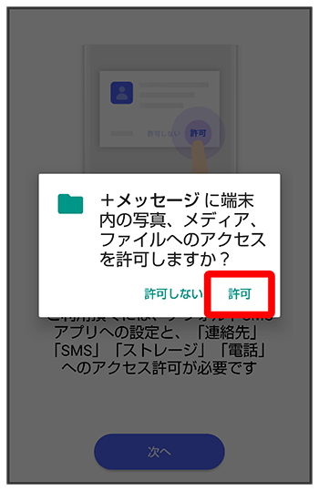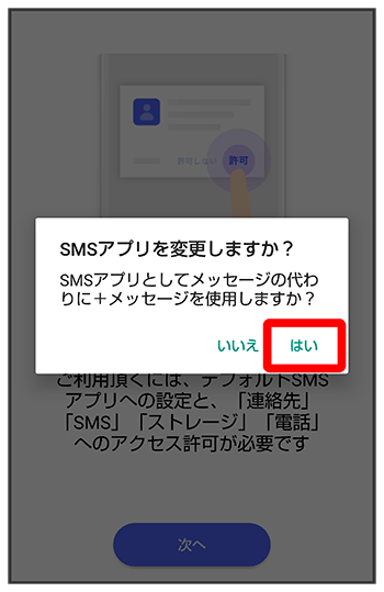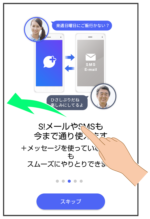 - をタップした場合は、SMS/S!メールのみの利用となり、+メッセージは利用できません。