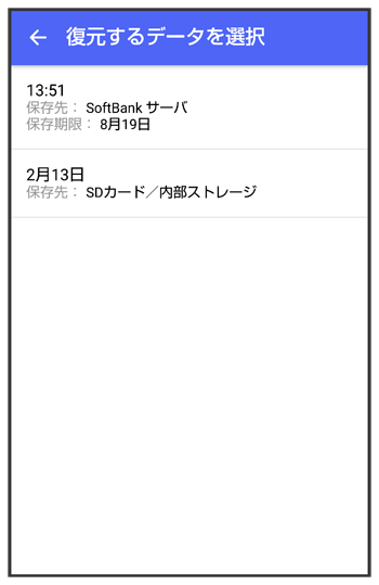 - お客様のバックアップデータの状況によっては表示されない場合があります。
