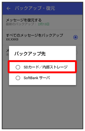 【赤】バックアップした時間で、保存先がSDカード/内部ストレージとなっているデータがあれば正常にバックアップされています。