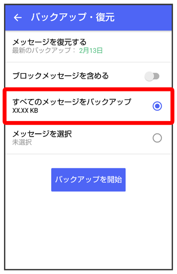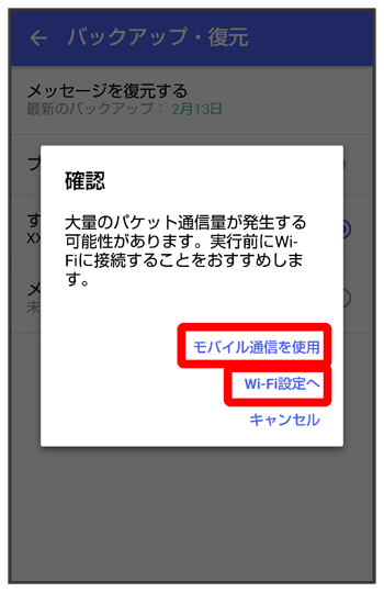 - 正常にバックアップされていた場合は、「STEP2 Xperia XZ2の+メッセージを初期設定する」に進んでください。