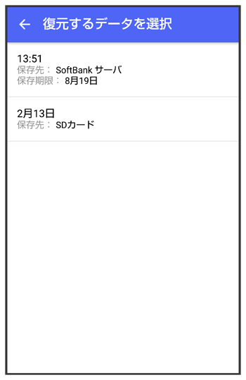 - 【赤】SoftBankサーバ上に以前のバックアップデータがある場合は上書きされます。