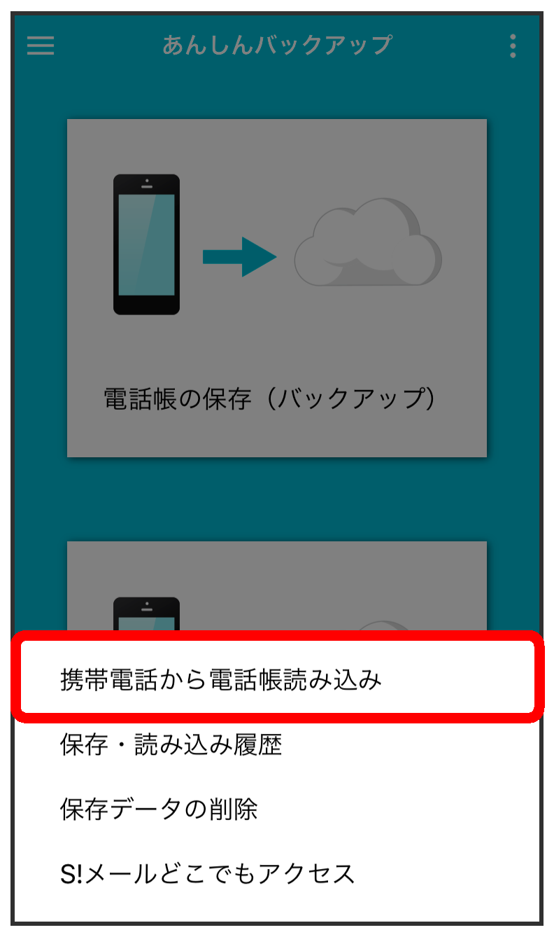 以前お使いの機種が3G携帯電話でS!電話帳バックアップサービスをご利用していたお客さまは、S!電話帳バックアップサービスのサーバーに保存されていたデータを本体の電話帳に読み込むことができます。