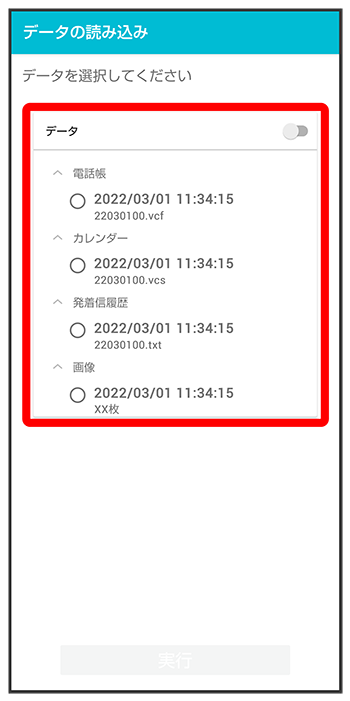 読み込みたいデータをタップ(