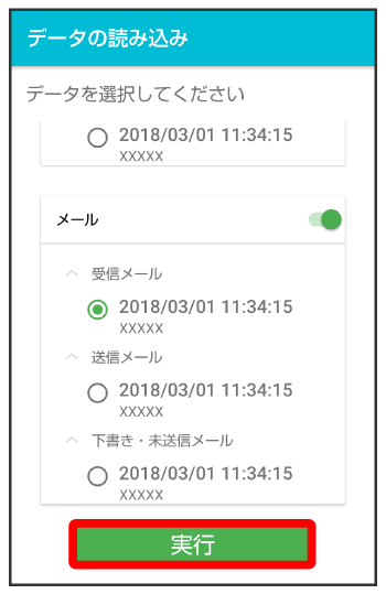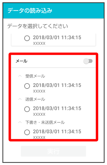 - 送信メール、下書き/未送信メールを復元するには、再度本手順を実施し、手順