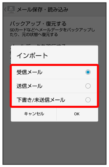 - 送信メール、下書き/未送信メールを復元するには、再度本手順を実施し、手順
