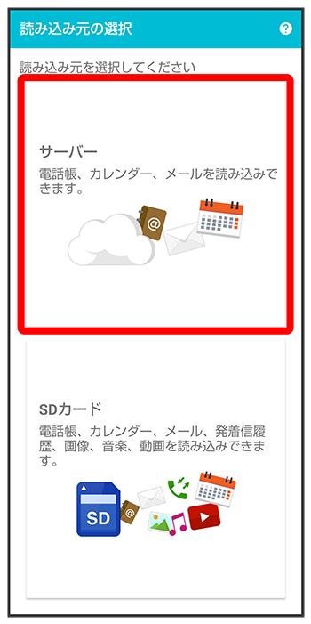 (+メッセージ)に読み込みます。あらかじめ、メールをサーバーに保存しておいてください。保存の方法について詳しくは、「サーバーに保存する」を参照してください。