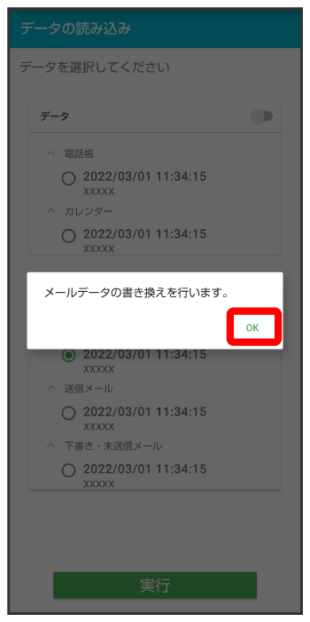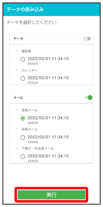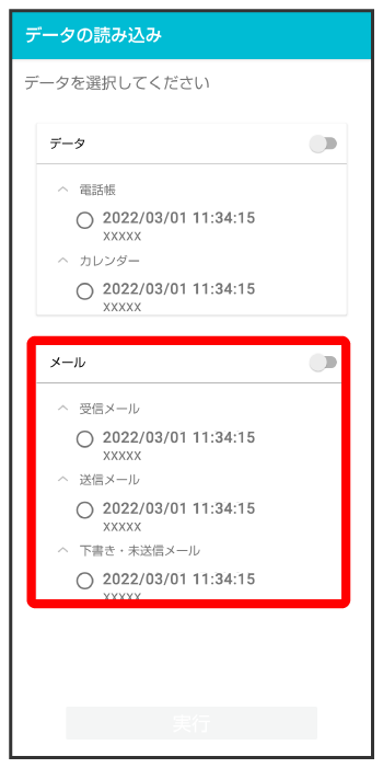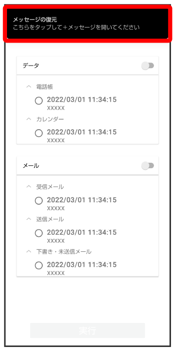 - 送信メール、下書き/未送信メールを復元するには、再度本手順を実施し、手順