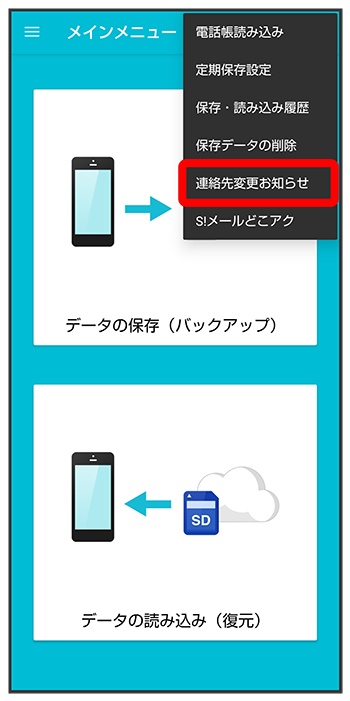 連絡先変更お知らせメール作成画面でこちらで検索できます