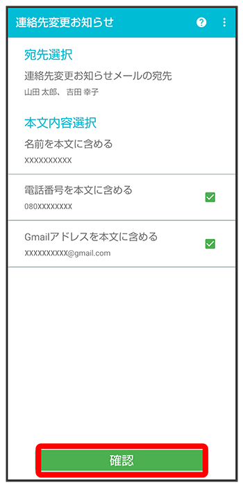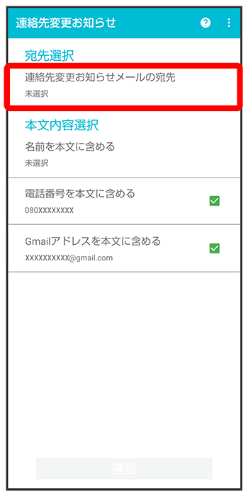 - /をタップすると、本文に電話番号/Gmailアドレスを記載するかどうかを設定できます。タップするたびに、有効(