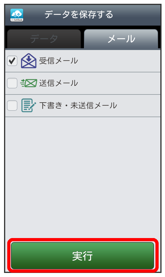 本体のメールデータを、サーバー/SDカードなどに保存します。
