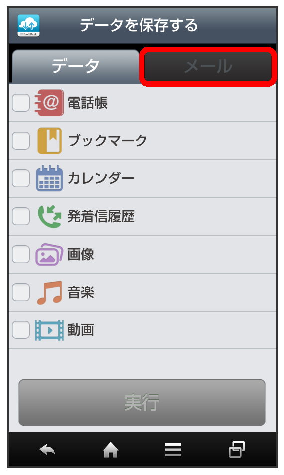 )が切り替わります。 - をタップすると、本体のメールデータをSDカードに保存できます。