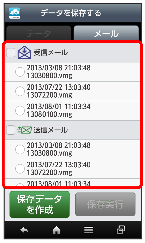 保存するメールデータの日付をタップ(
