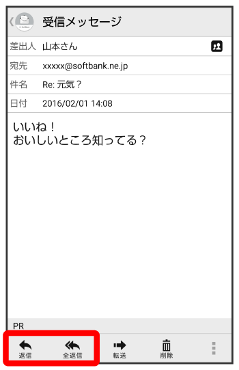 - メール一覧画面で対象のメールを右にフリックして/をタップしても、同様の操作が行えます。