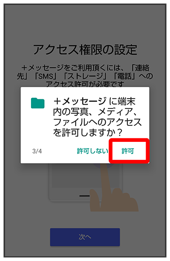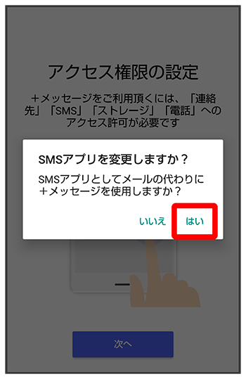 - 設定せずにをタップして、あとで設定することもできます。詳しくは「http://help.mb.softbank.jp/app/plusmessage/sp/02-01-02.html」を参照してください。