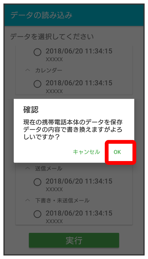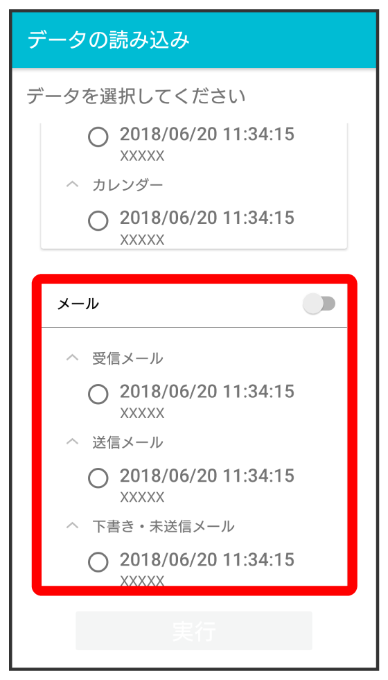 読み込みたい受信メールデータをタップ(