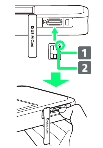 - USIMカードの取り付けのときは、IC部分に触れたり、傷つけたりしないようにご注意ください。