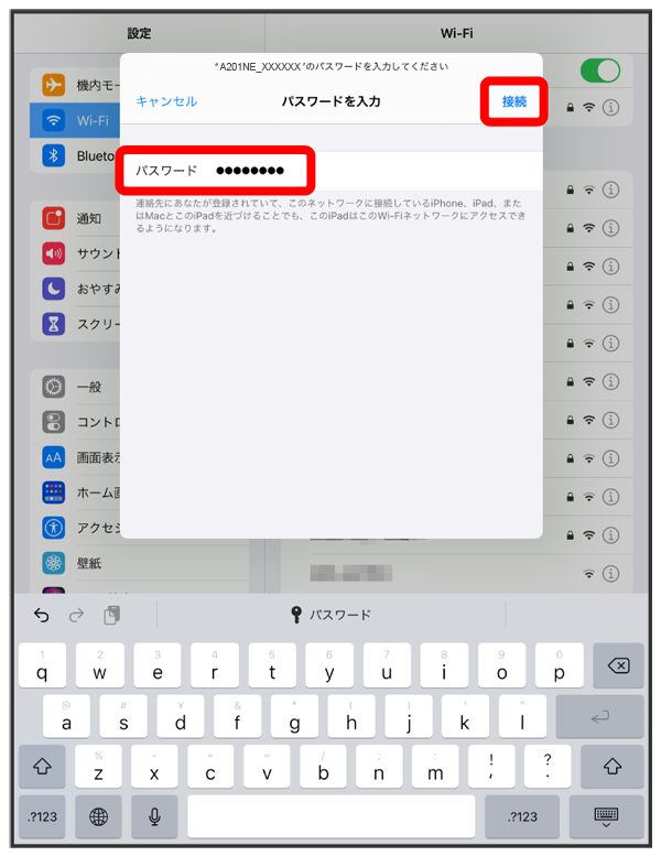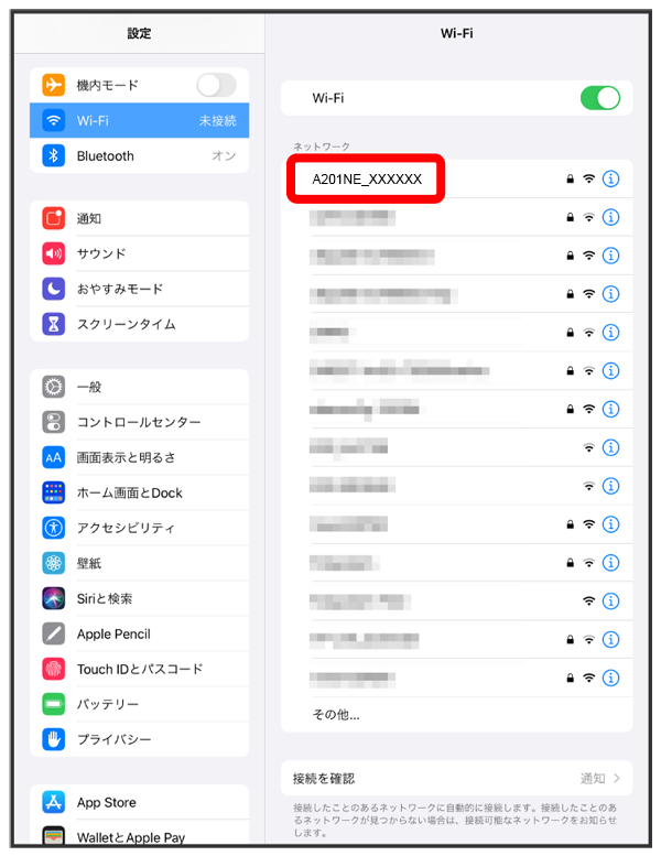 iPadの無線LAN機能がONになります。