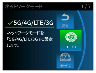 - (5G/4G/LTE/3G)、(5G(NSA)/4G/LTE/3G)、(5G/4G/LTE)、(5G(NSA)/4G/LTE)、(4G/LTE)、(4G/LTE/3G)を選択できます。