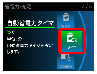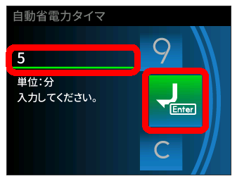自動省電力モードで設定した状態になるまでの時間を入力します。