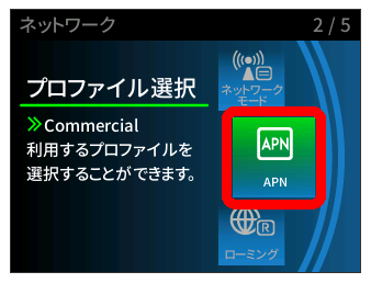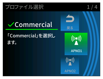 - (Commercial)、(Commercial IPv4/IPv6)、([法人]閉域網契約専用APN(共通))から選択します。