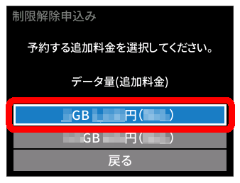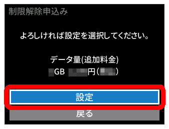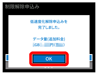 本機のディスプレイメニューから低速化解除の予約のお申し込みができます。
