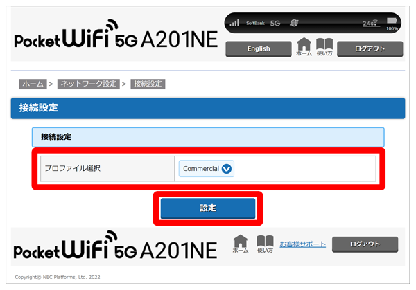 | プロファイル選択 | 使用するプロファイルを選択します。1 初期設定:Commercial |
